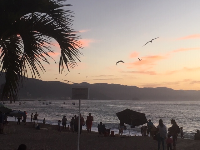 At the south end of the Malecon, across the little bridge you will find Los Muertos Beach. Deadmen’s Beach,” named for legendary pirate raids on the nearby village is a gorgeous strip of beach lined with very enticing beach cafes and colourful vendors… but also an area you can just plunk yourself on the soft brown sand and watch the seabirds. We relaxed and surveyed the fishermen would come down and clean their freshly caught fish in the tide, likely for the lunch meal at the restaurant steps away… A frenzy of birds circled in the air –brown pelicans, seagulls, terns – then we noticed one unfortunate frigate bird whose beak was entangled with a net and sharp hook. The kindly fishermen managed to catch the flailing bird and gently set it free (see picture).